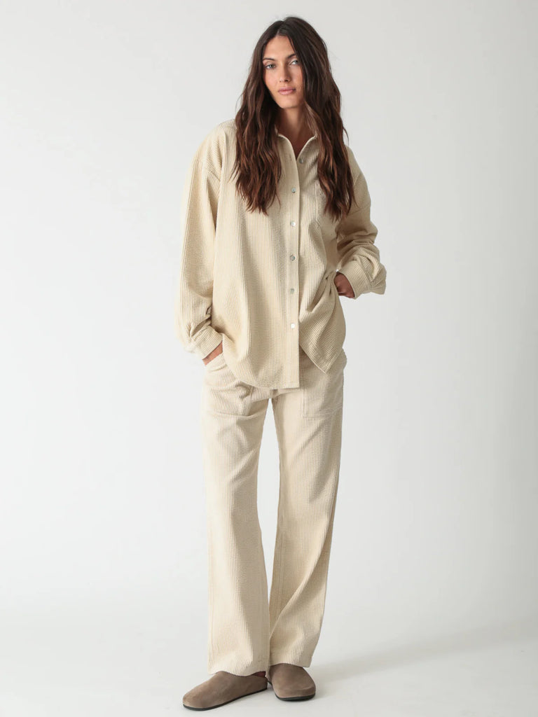 Details: The Boyfriend shirt is your perfect transitional button down, made from the coziest corduroy. We love the relaxed, oversized fit paired with the matching Easy Pant.