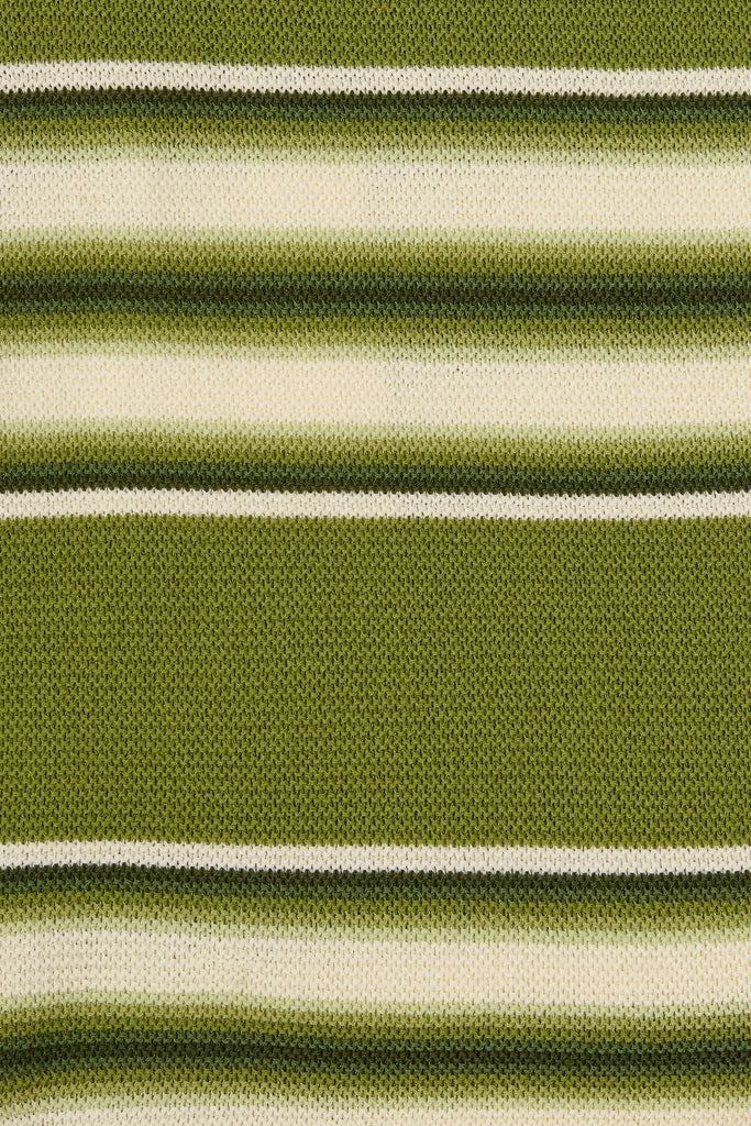 Detail: A maxi dress, designed from a signature true knitwear fabrication in a vibrant green stripe. Fitted through the bodice with a straight neckline and thin straps, adjustable in length, it then falls into a soft silhouette with a relaxed skirt that crops around the ankles. Style with a simple sandal for a unique approach to occasionwear dressing.