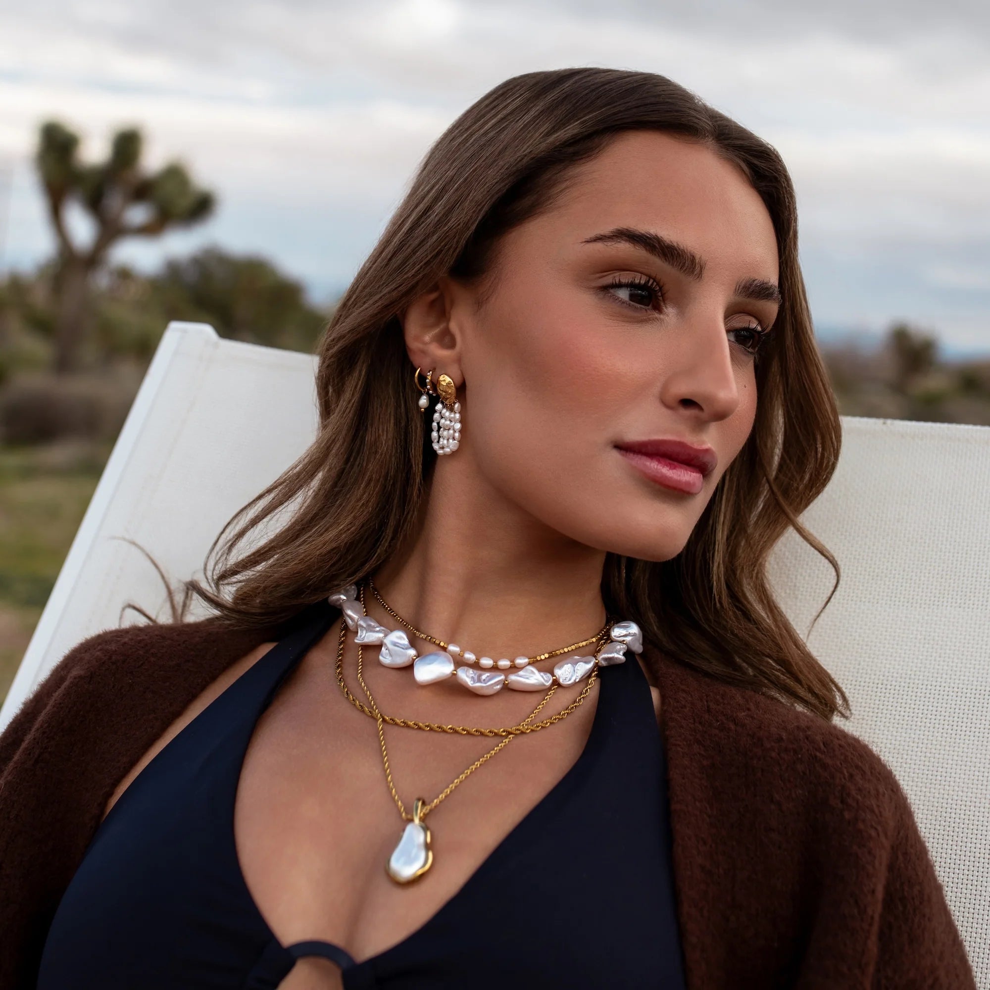 If your jewelry happens to get dirty on your adventures — no worries! Here is what we recommend: Mix a few drops of dish soap with a cup of water, soak your pieces for a few seconds, rinse, then use a clean cloth to pat dry!
