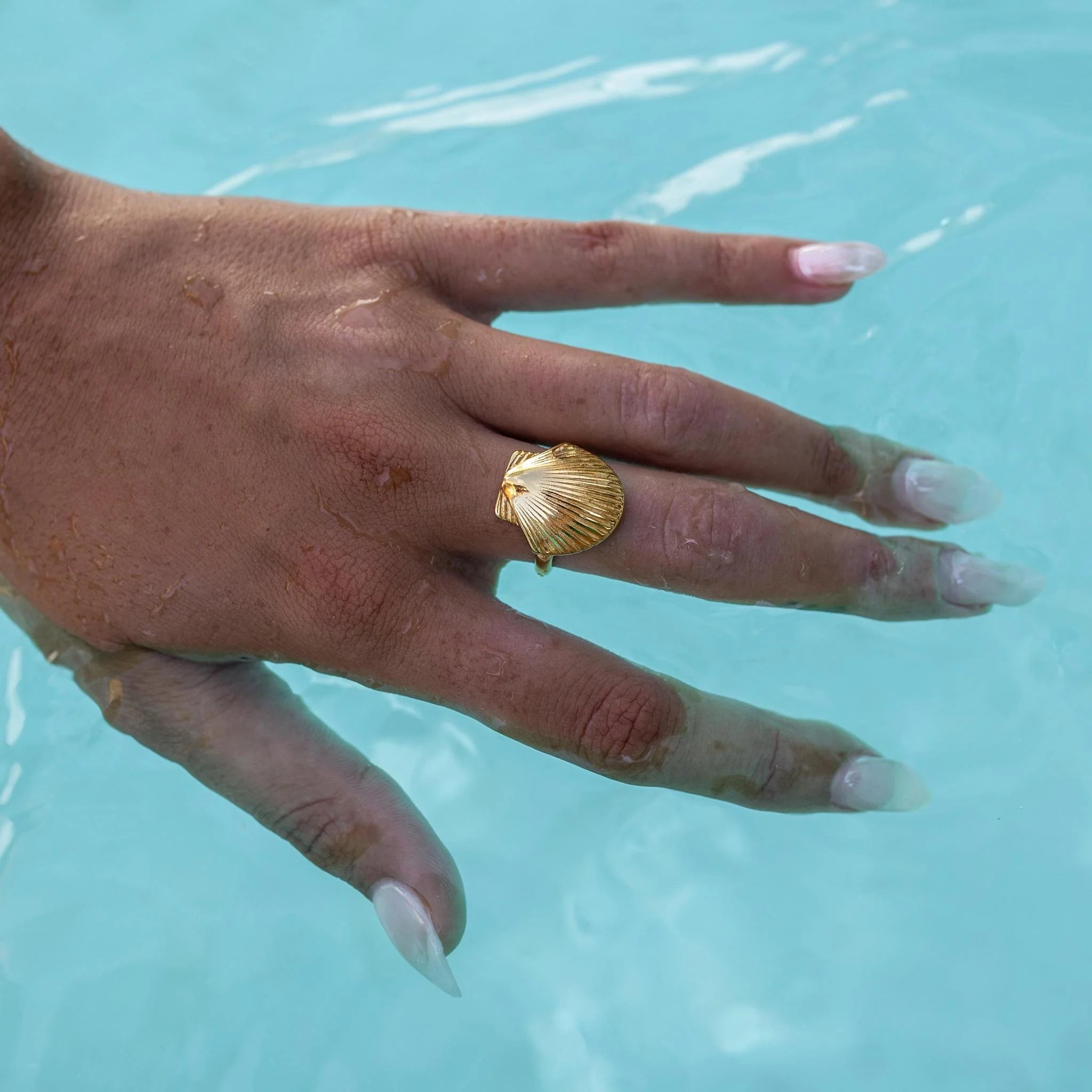 Detail: Calling all beach girls! This adorable shell-inspired ring is ready for these warm beach days ahead. Plus, it's made for the water!