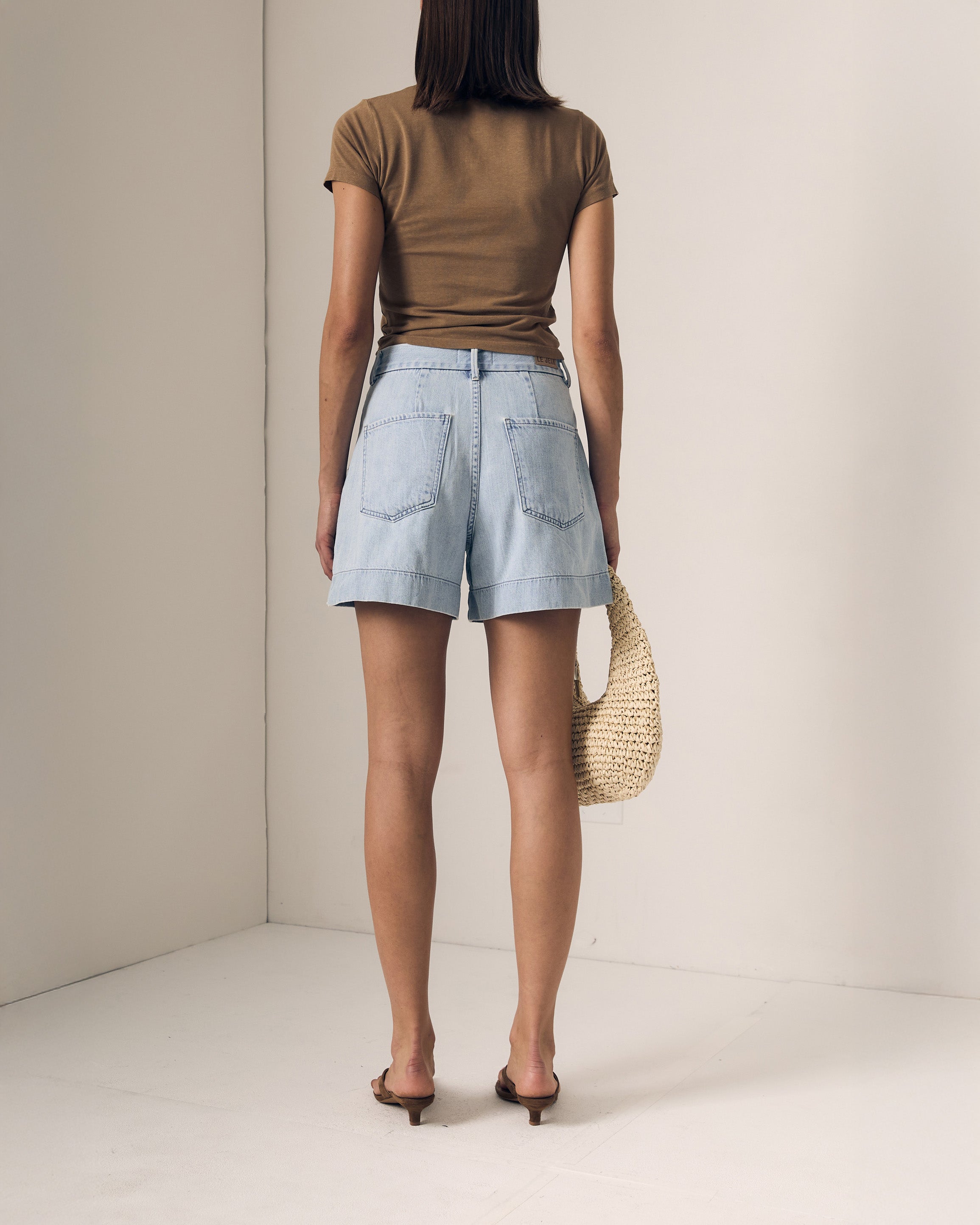 Detail: An elevated take on the everyday short with a little extra length. The trouser style adds the perfect taste of elevation to these light-wash jean shorts. Pair the Trouser Short with some sandals and a graphic tee for an elevated daily look!
