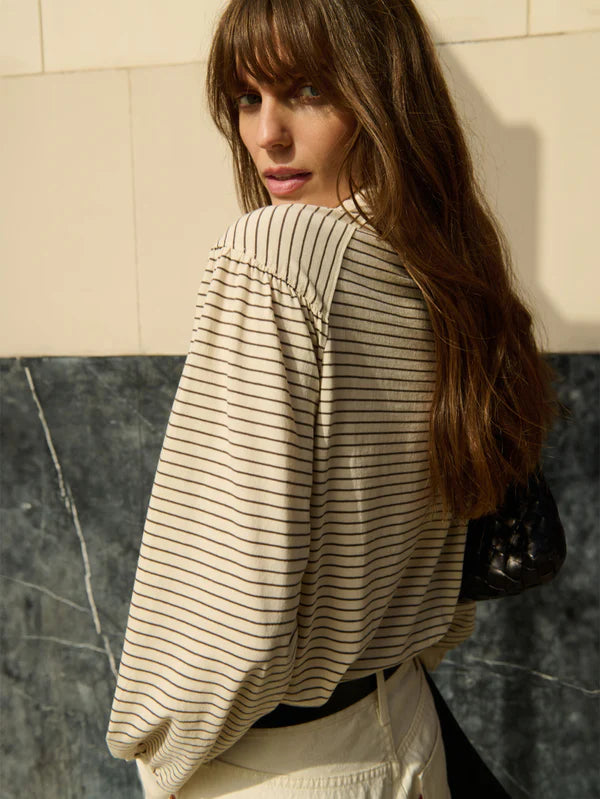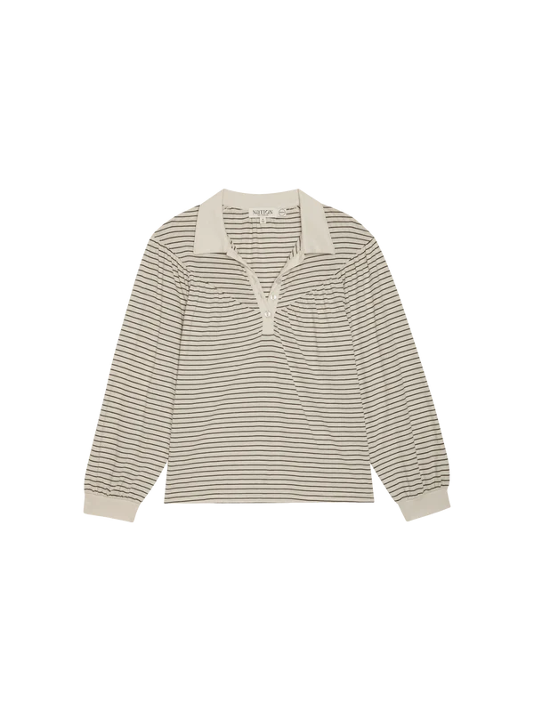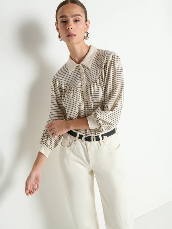Detail: The Cecila Tee offers a feminine take on the polo. A collared neckline, shell buttons, and shirred cuffs add structure, while the easy 100% organic cotton drapes just right.