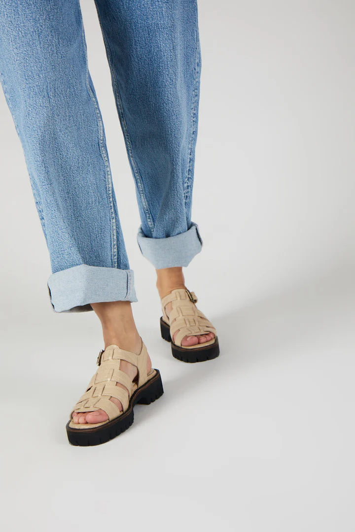 Detail: City street adventures made chic in our 90's inspired fisherman style sandal. Large oversized straps and lightweight chunky sole make the HADDIE Dad Sandal summer perfection. The treaded sole is made of EVA providing extra comfort and wearability. A thin brown leather welting detail lines the outsole of the shoe for a nod to menswear trends. Welt detail is hand finished so some variation in appearance is normal and should not be considered a defect.