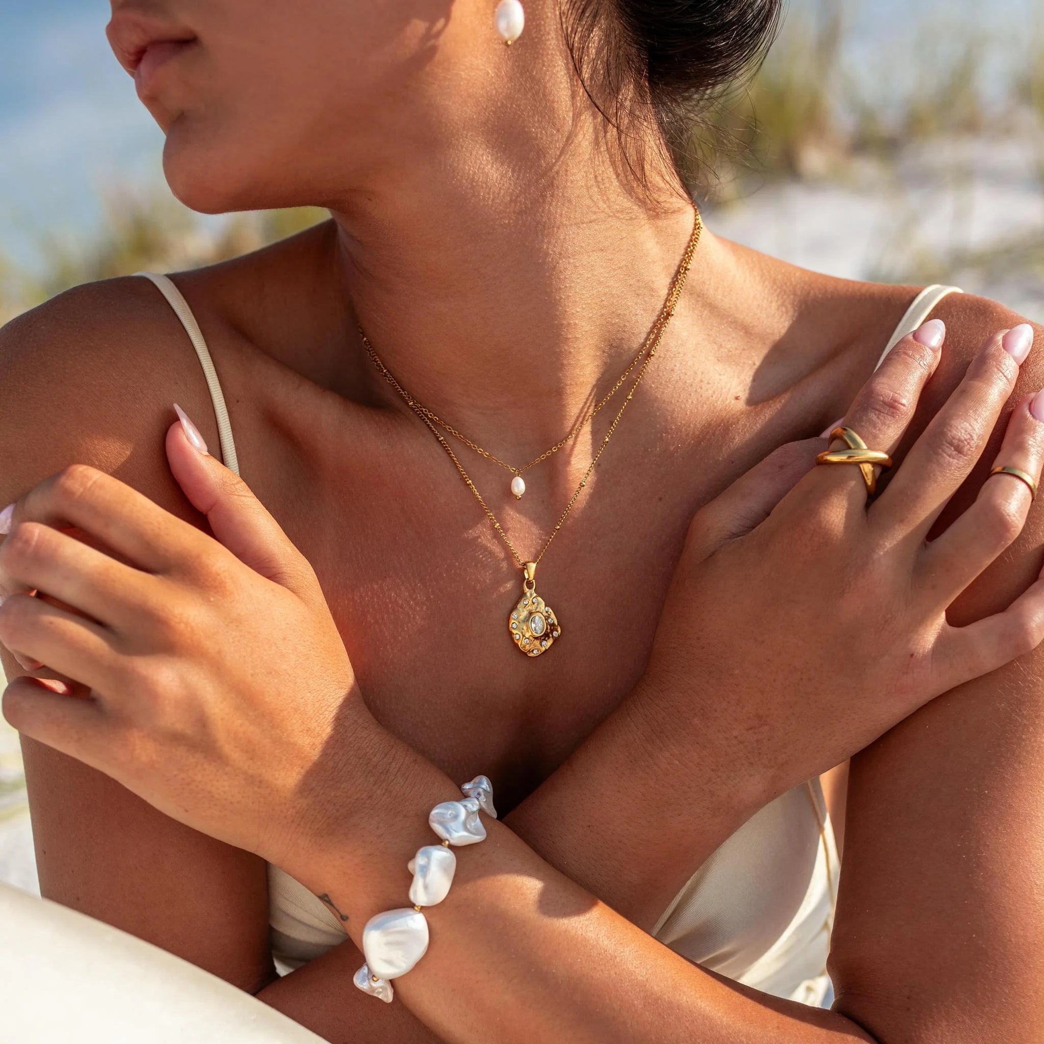Our water resistant pieces are made with adventure in mind. However, to make your pieces last as long as possible, we recommend rinsing them with fresh water and patting dry after exposing them to salt water. We would like to note that many of our earrings are categorized as water sensitive — so try to give them a little extra love.