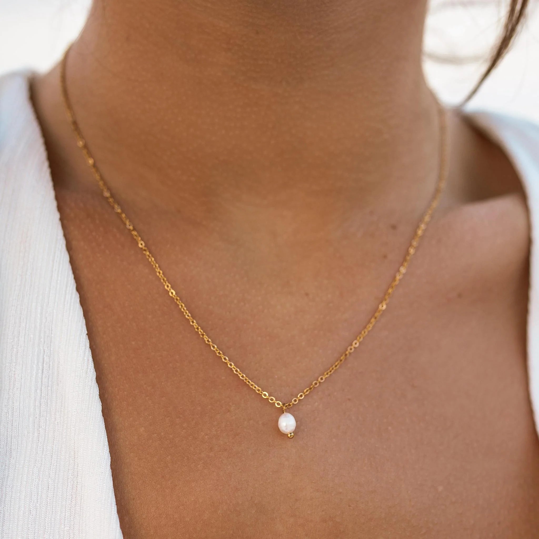 Detail: A dainty gold chain with a delicate pearl detail. Perfect for everyday wear or as an addition to your go-to necklace stack!