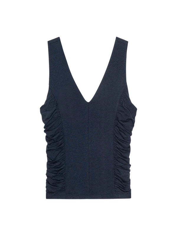 Detail: Flirty, yet understated, the Shawna Tank is our elevated take on feminine simplicity. Including a bra-friendly bodice with ruched side panelling, this v-neck is made in a luxe jersey spandex.
